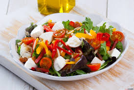 Xoriatiki - salada grega preparada com tomate, pepino, pimentão, cebola, azeitona e queijo feta.