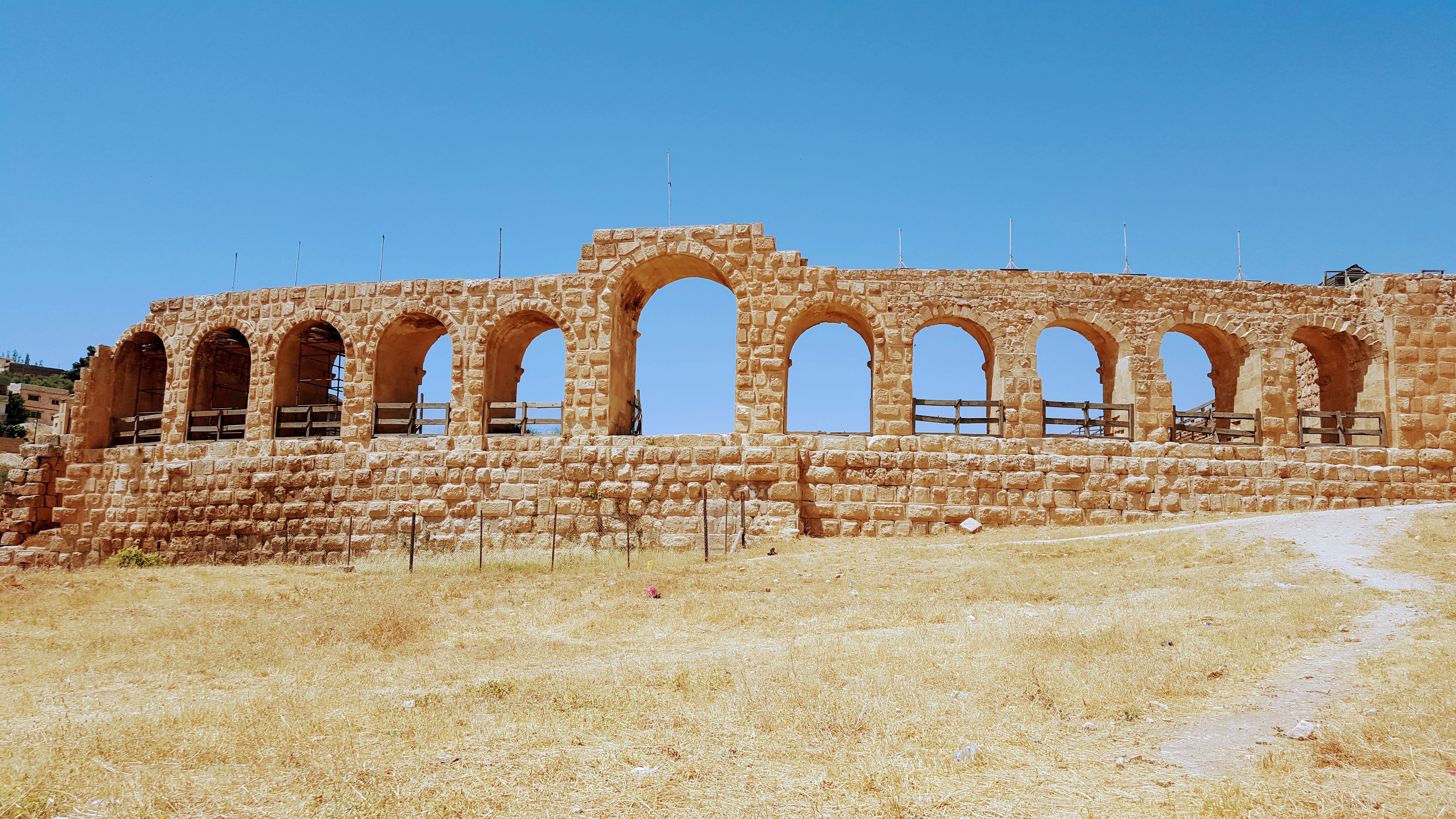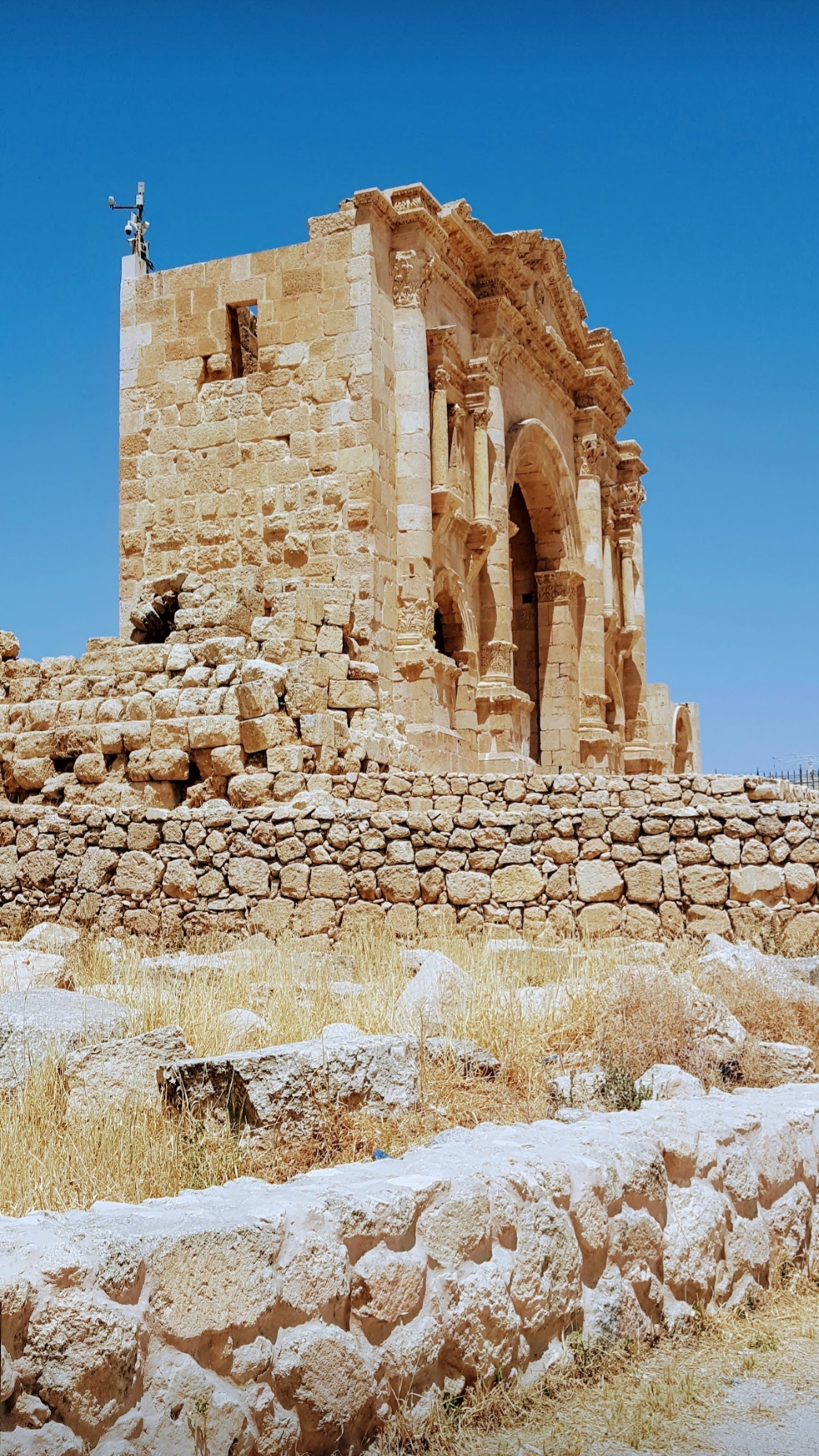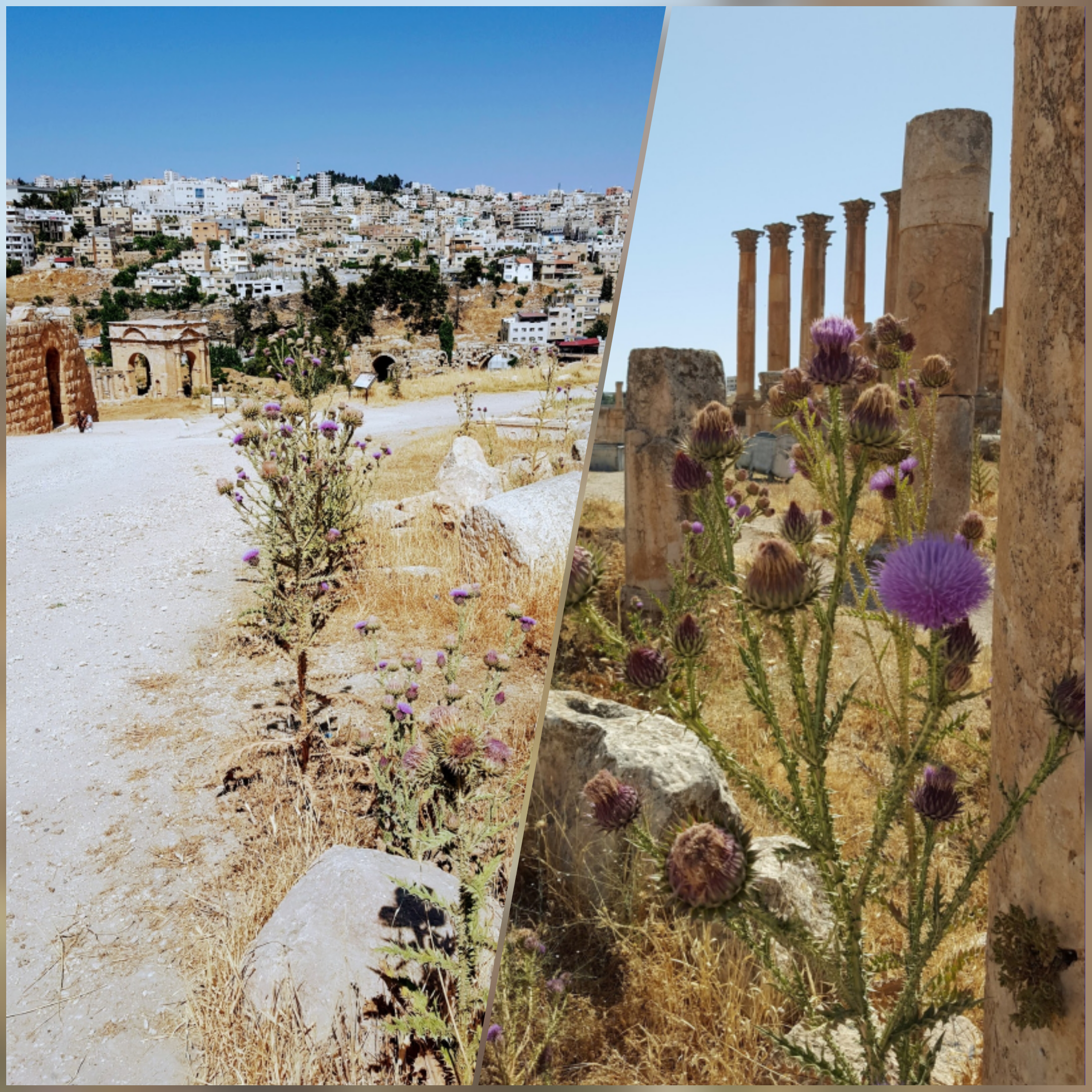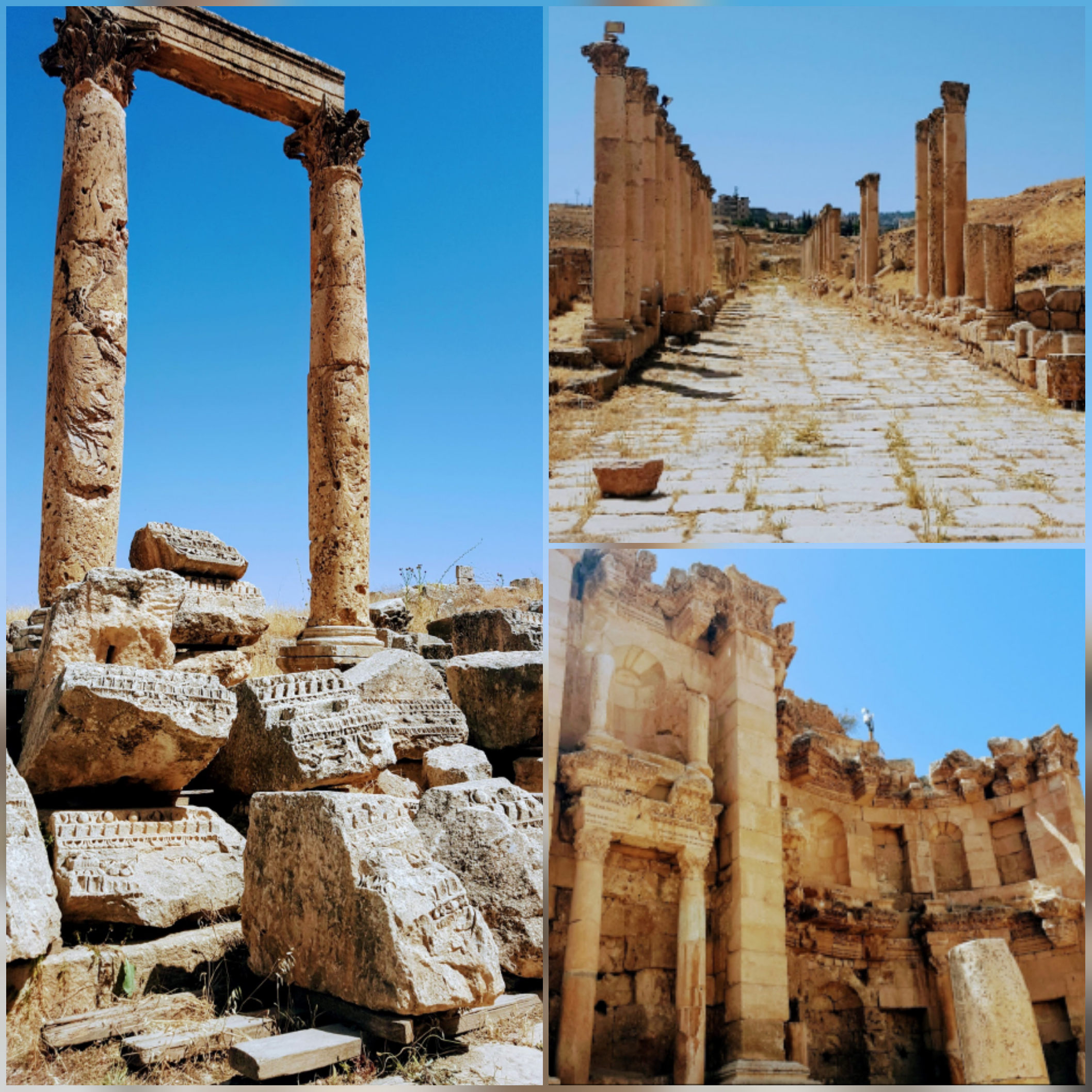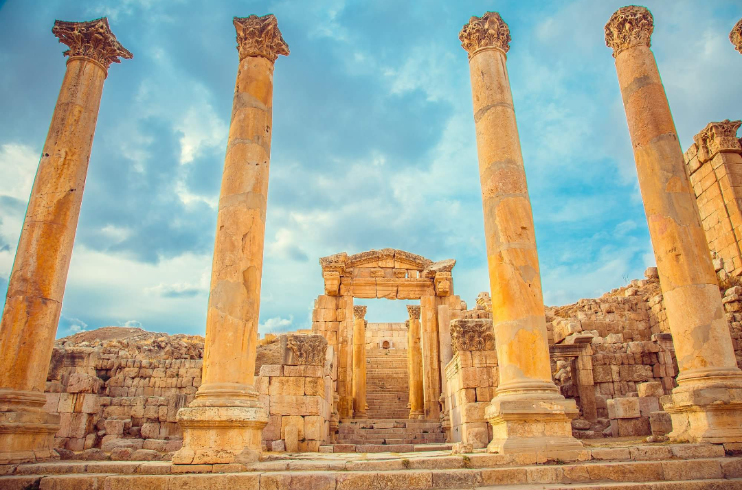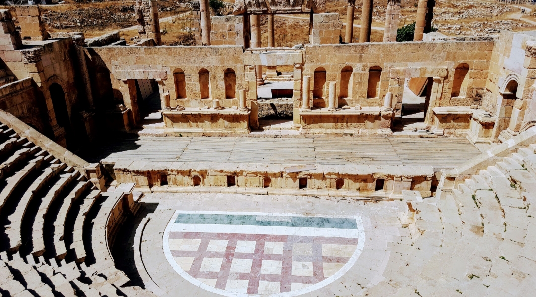 Jerash ou Gérasa começou a ser habitada há 6500 anos atrás, fundada pelos gregos no século III a.C. a cidade prosperou graças à posição estratégica nas rotas comerciais de incenso e especiarias que vinha da Síria, mas viveu seu auge já sob domínio romano em 63 d.C. Se tornou a cidade favorita do Imperador Adriano, após várias ocupações, a “Pompéia” do Oriente, foi destruída por uma manifestação da fúria da natureza foi dizimada pelo grande terremoto do ano de 749, enterrada durante séculos sob o deserto, foi redescoberta e restaurada em 1925, onde se revelou uma das cidades romanas mais bem preservadas do mundo quase intacta, percebemos isso no esplêndido testemunho arquitetônico e urbanista.