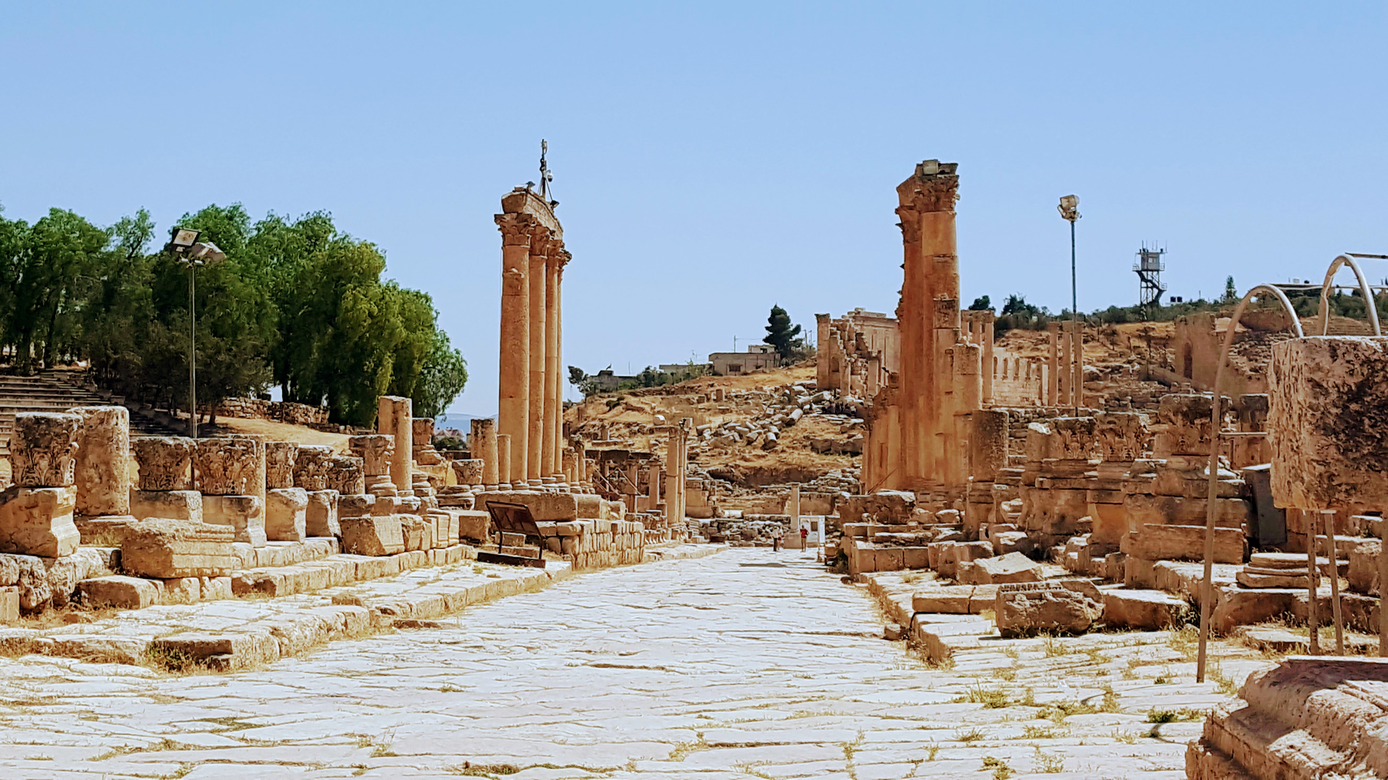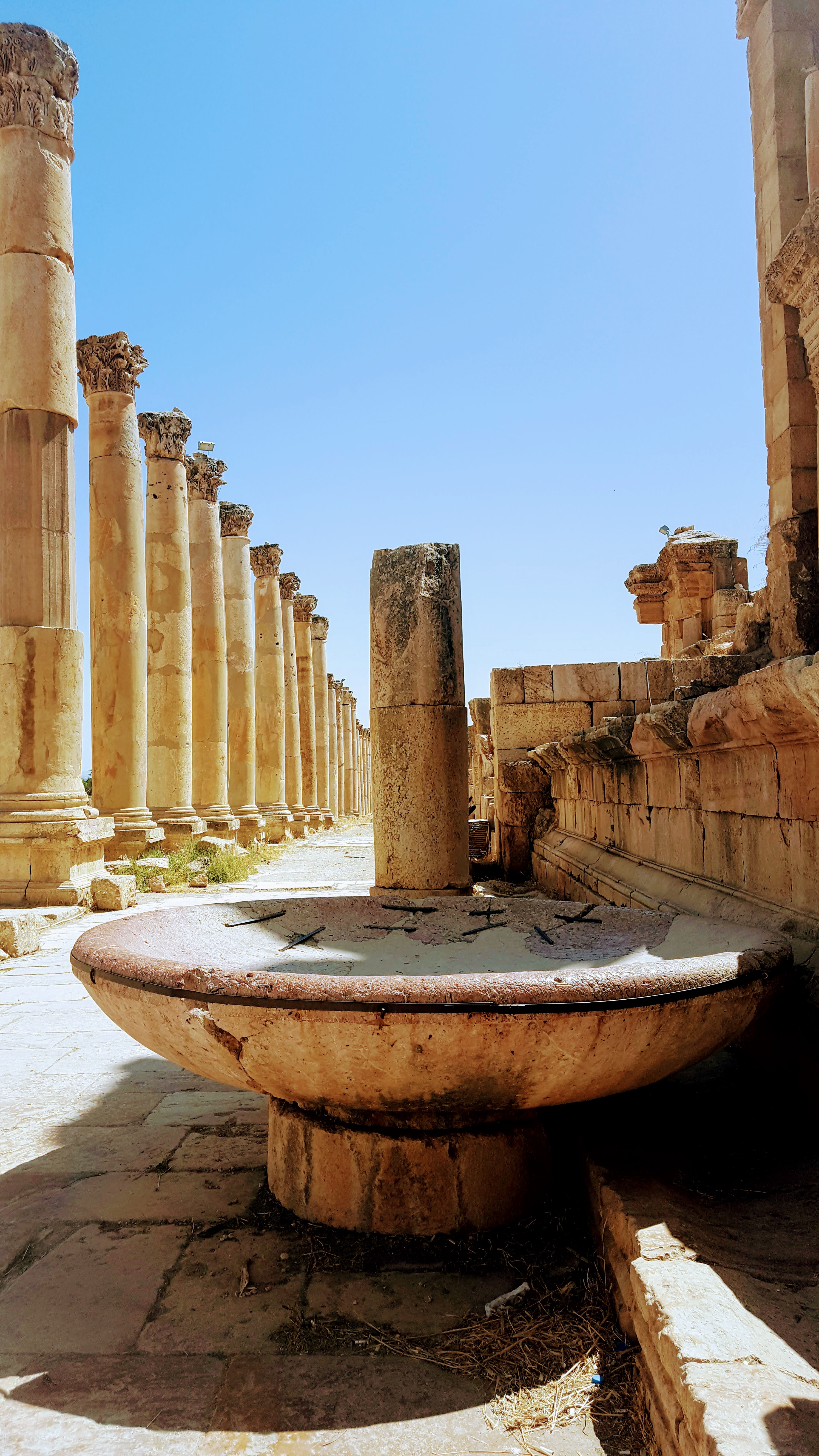 Dela é possível acessar a Rua Colunata, que era a principal via da cidade e seu centro comercial. As pedras que estão no chão fazem parte do piso original – é possível ver em um dos lados da rua as marcas que as carruagens deixavam ao passar. As colunas que cercam a rua também são originais, e apresentam diversos detalhes.